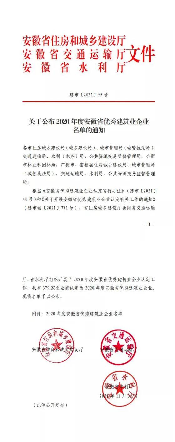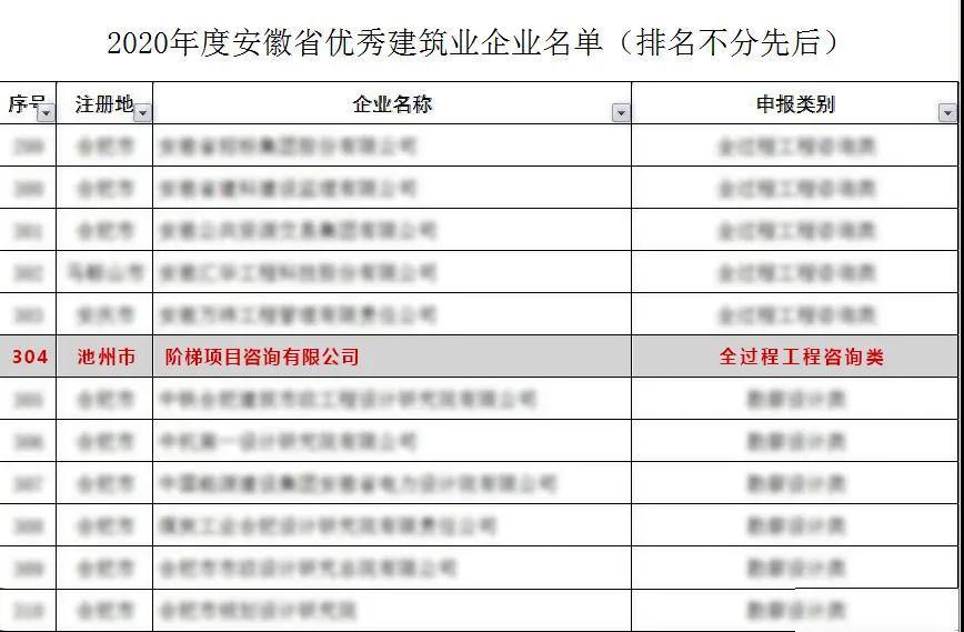 近日,安徽省住房城鄉(xiāng)建設(shè)廳公布2020年度安徽省優(yōu)秀建筑業(yè)企業(yè)名單,階梯項(xiàng)目咨詢有限公司在全過程工程咨詢類榮耀上榜。據(jù)了解,該評(píng)選活動(dòng)由安徽省住房城鄉(xiāng)建設(shè)廳、省交通運(yùn)輸廳、省水利廳等單位共同組織,共有379家企業(yè)被認(rèn)定為2020年度安徽省優(yōu)秀建筑業(yè)企業(yè),其中,列入全過程工程咨詢類上榜的共為十家。