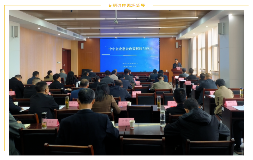 市企業(yè)服務中心負責人胡建中擔任主講嘉賓。胡建中圍繞“國家對中小企業(yè)的政策支持與方向”、“省、市、區(qū)當前主要政策”以及“企業(yè)如何更好地利用政策資源”等內容進行了深入淺出的講解。本次參訓的企業(yè)涵蓋了制造業(yè)、農林業(yè)、住建、服務業(yè)、文化旅游業(yè)、交通運輸業(yè)、采掘業(yè)等多個領域;胡建中有針對性地對適應這些企業(yè)的相關惠企政策進行了詳細分析,并通過典型案例的剖析,使參會者對相關政策有了更直觀的理解。